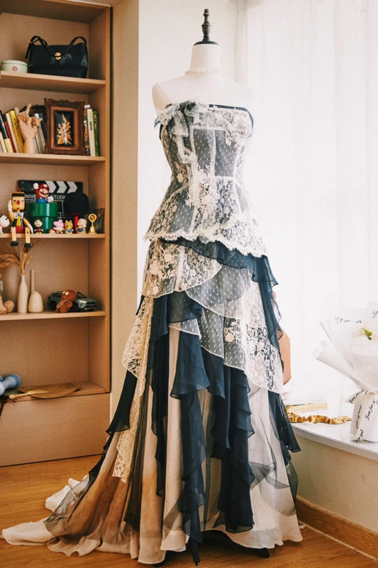 Vintage Purple Wisteria Flower Romantic Purple Exquisite Handmade Beaded Long Chiffon Dress NV6609
