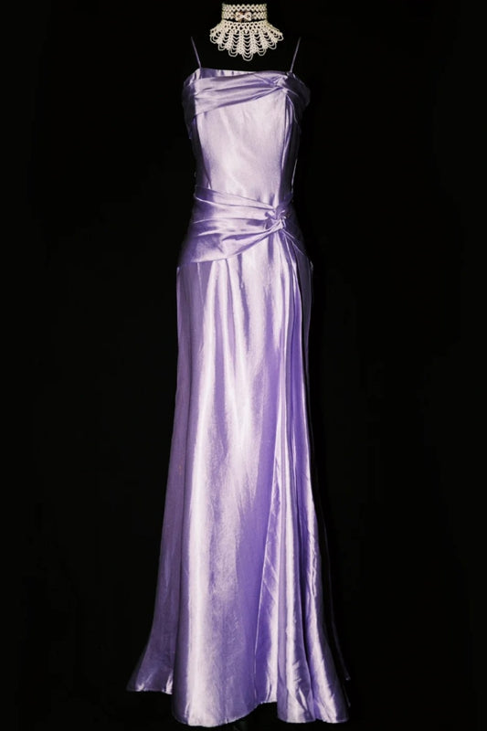 Purple exquisite pearl decoration retro long satin formal dress NV6612