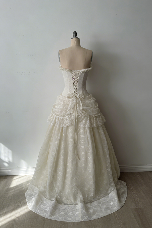 NiceVestidos--Vintage Strapless Lace High-End Wedding Dress, Court Style Corset 3D Floral Embellished Ball Gown for Retro Wedding NV5891