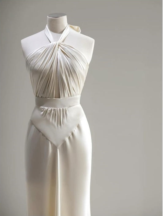 Wunderschönes Vintage-Kleid mit exquisiten Edelsteinen und Perlen, Neckholder, lang, Meerjungfrau-Stil, schmal, bodenlang, Satin, Ballkleid, Abendkleid, Partykleid, nv3946