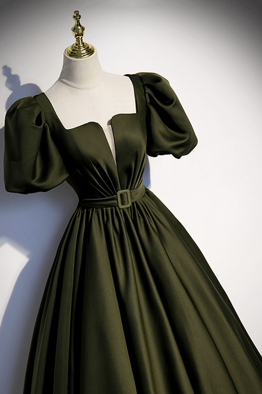 Einfaches langes Ballkleid aus grünem Satin in A-Linie, Abendkleid in Sondergröße nv389