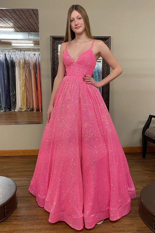 Wunderschöne A-Linie Spaghettiträger Lange Pailletten Glänzende Ballkleider Partykleider nv207