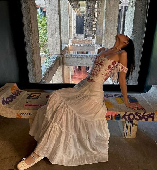 Weißes Vintage-Blumen-Chiffon-Langkleid für den Heimkehrball, Ballkleid, NV4471