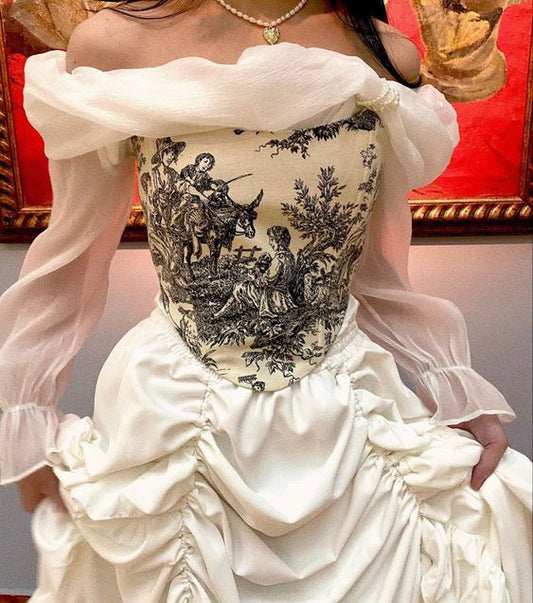 Weißes Vintage Prinzessin Chiffon Tüll Lange Ärmel Langes Ballkleid Abendkleid Partykleid nv2614