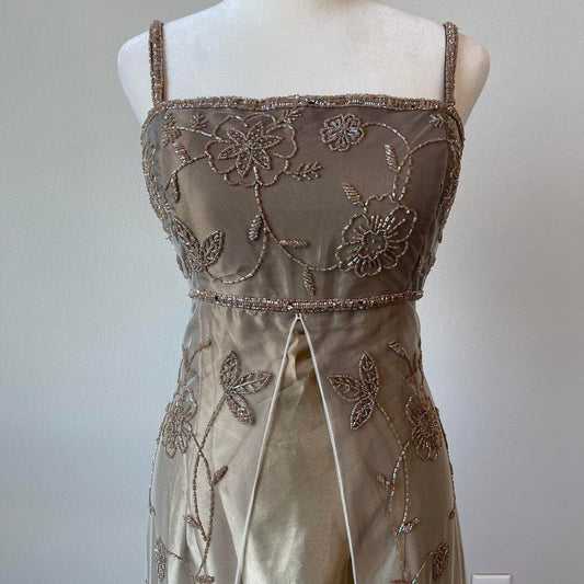 Champagner-Gold, wunderschönes, modisches, exquisites Perlenkleid, bodenlanges Ballkleid, Abendkleid, Geburtstagspartykleid, NV3734