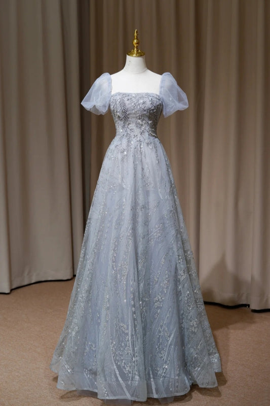 NiceVestidos – Langes, funkelndes blaues Abendkleid mit zarter Perlenstickerei NV5996