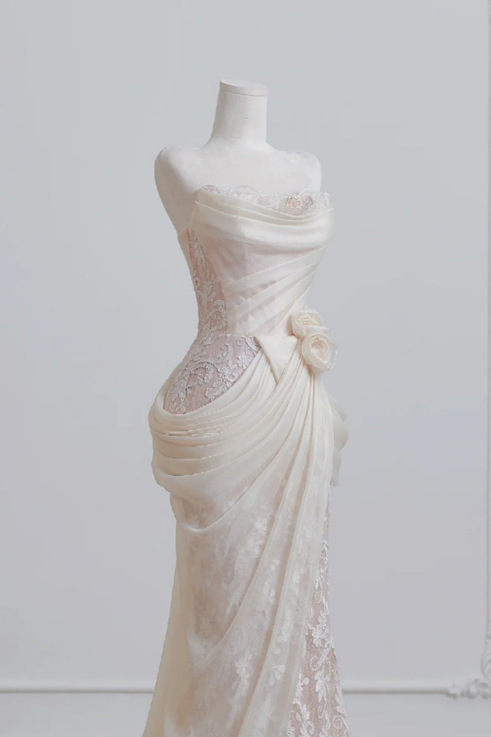 🤍🤍 Exquisite And Romantic Lace Fishtail Long Wedding Dress, Bridal Gown NV6582