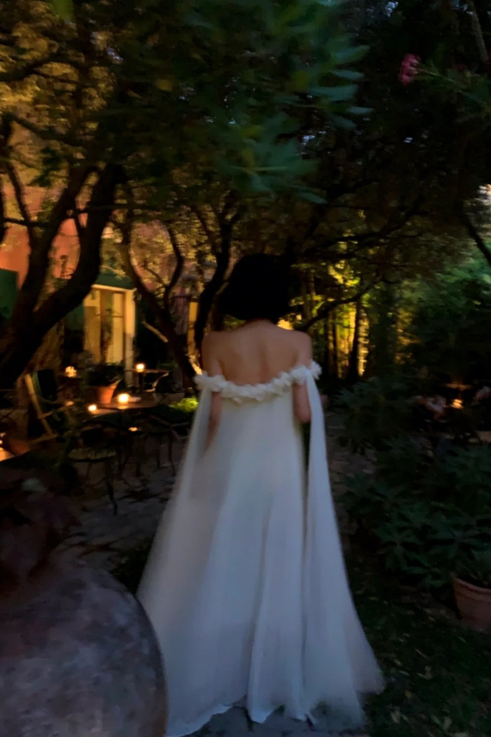 Französisches 3D-Blumen-Kleid mit schulterfreiem Ausschnitt: Plissierter Chiffon, rückenfreies Kleid mit Schärpe, Feen-Thermalbad-Kleid NV6402