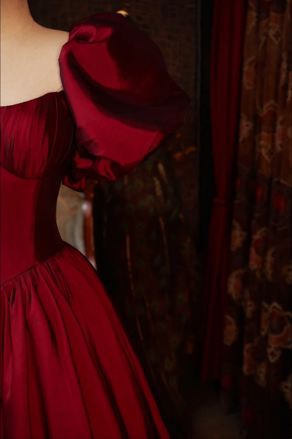 Vampire Red Princess Traditional Red Toasting Dress Long Satin Princess Gown NV6534