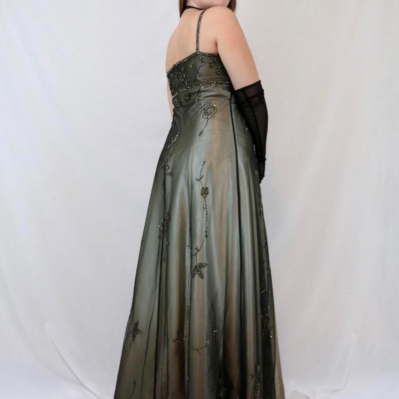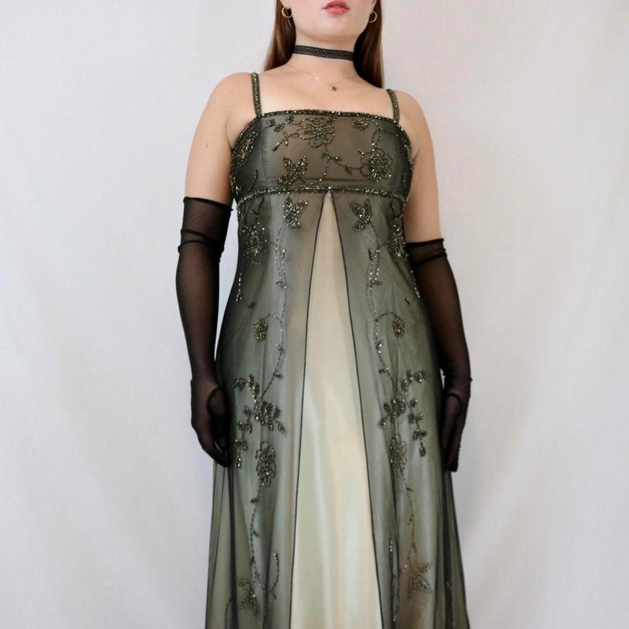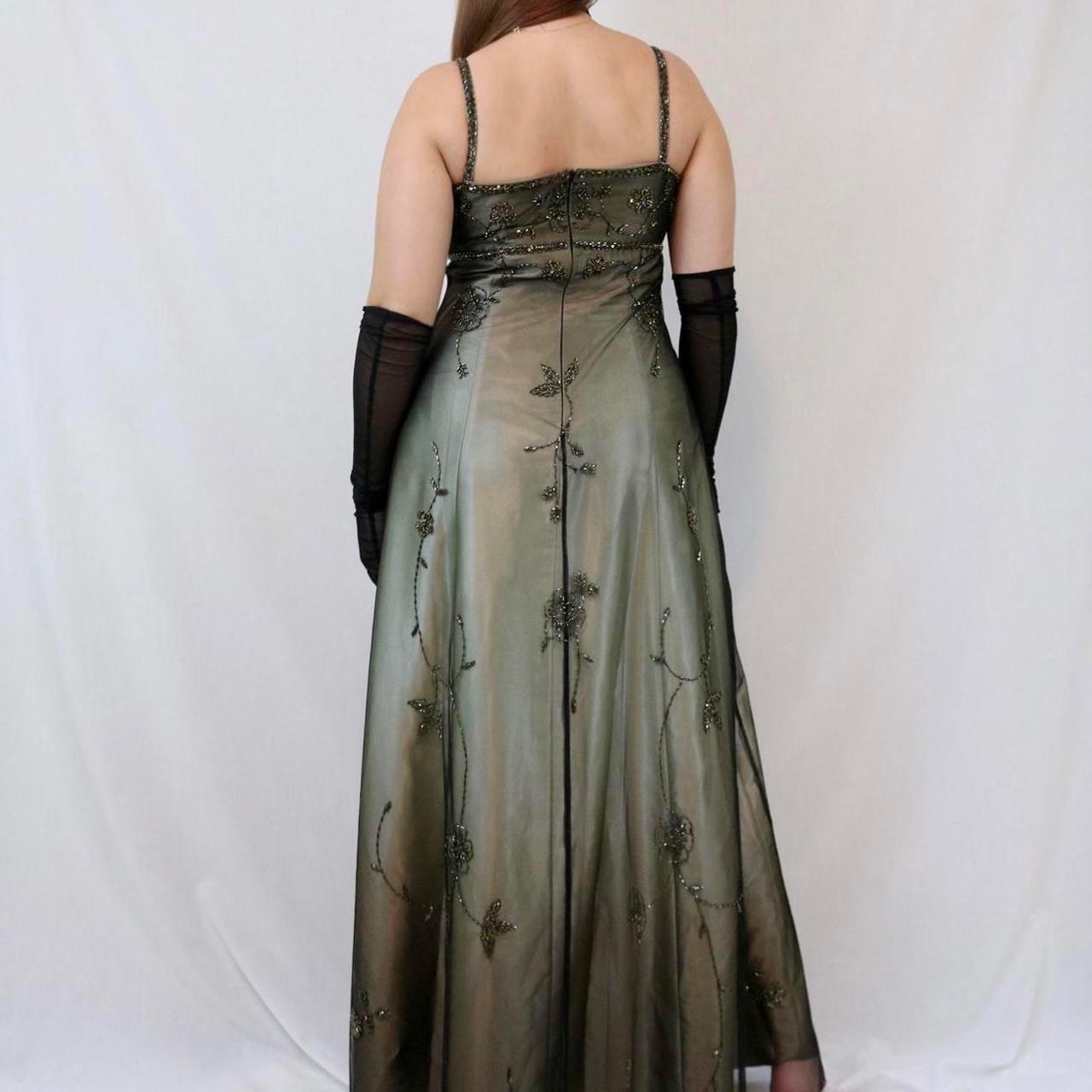 ✨ Empire Dress Vintage Green and Gold Floral Glitter Ombre Beaded High Waist Long Tulle Formal Prom Dress Evening Gown Party Dress nv4982