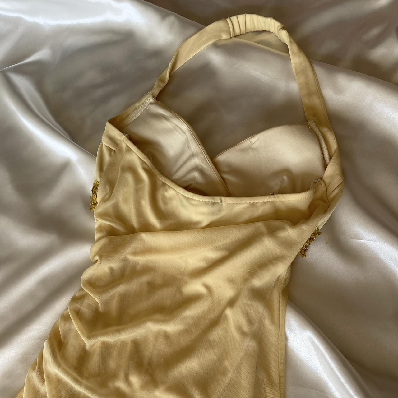 ✨Butter yellow fashion suspenders unique sparkling glitter sweetheart backless neckline beaded tassel long chiffon prom dress nv5378
