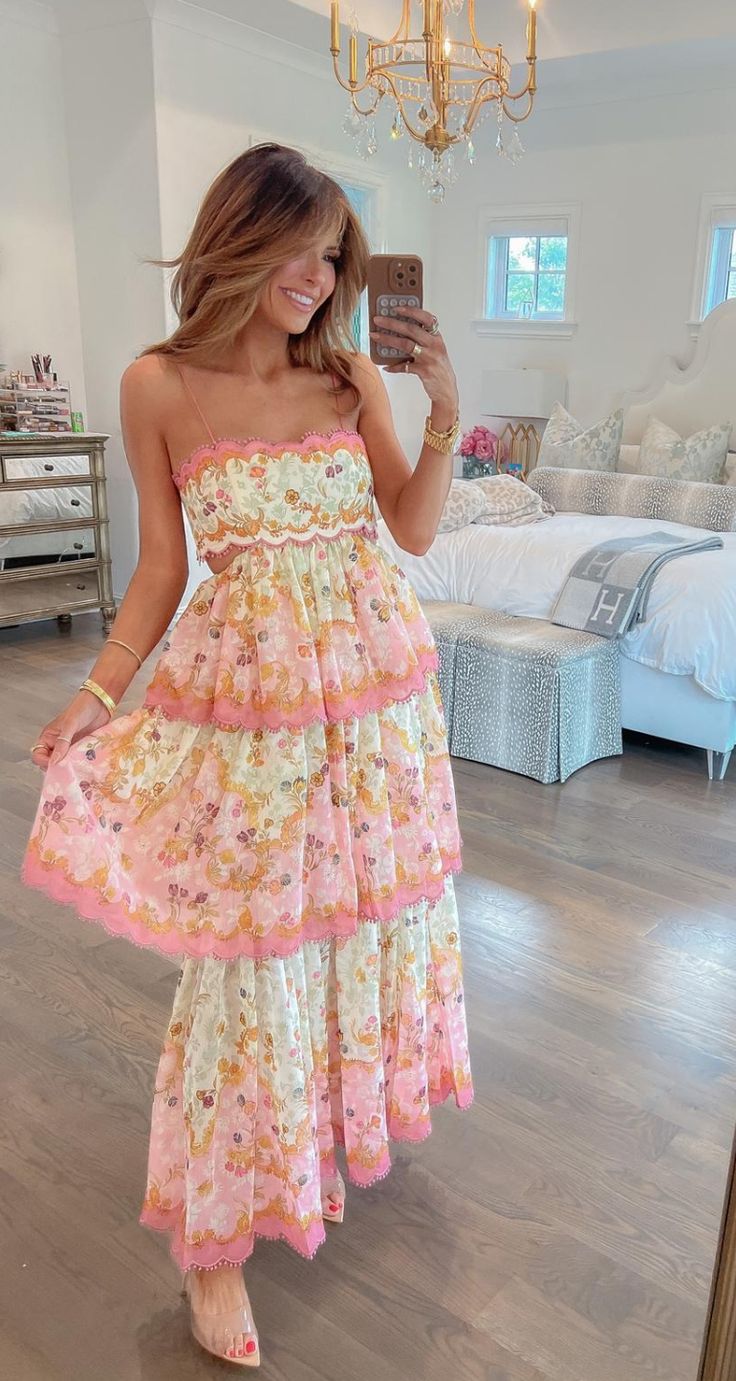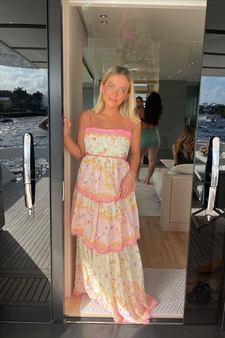 A-Line Floral Print Halter Long Prom Gown Tiered Formal Party Dress Maxi Dress nv2675