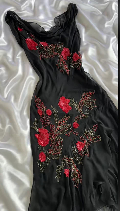 Black exquisite rose flower beaded long Chiffon prom dresses evening dress nv5368