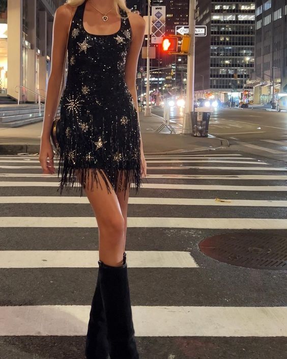 Black shiny sequins short homecoming dress birthday cocktail party dress nv4659