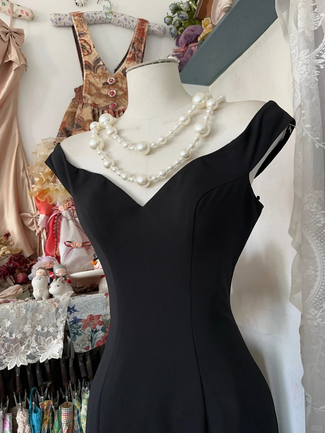 Black simple elegant satin long mermaid slim ball gown evening dress party dress nv4222