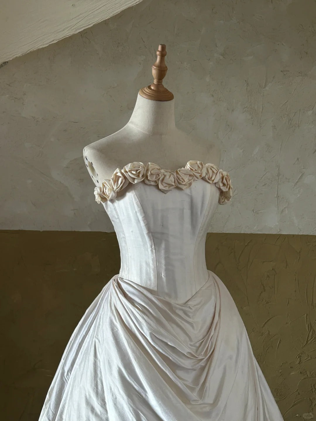 Light Champagne Floral Long Satin Ball Gown Evening Gown Wedding Dress nv4438