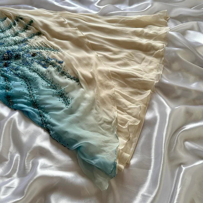 Blue gorgeous beautiful stylish unique elegant exquisite floral beading long chiffon ball gown evening dress party dress nv4903