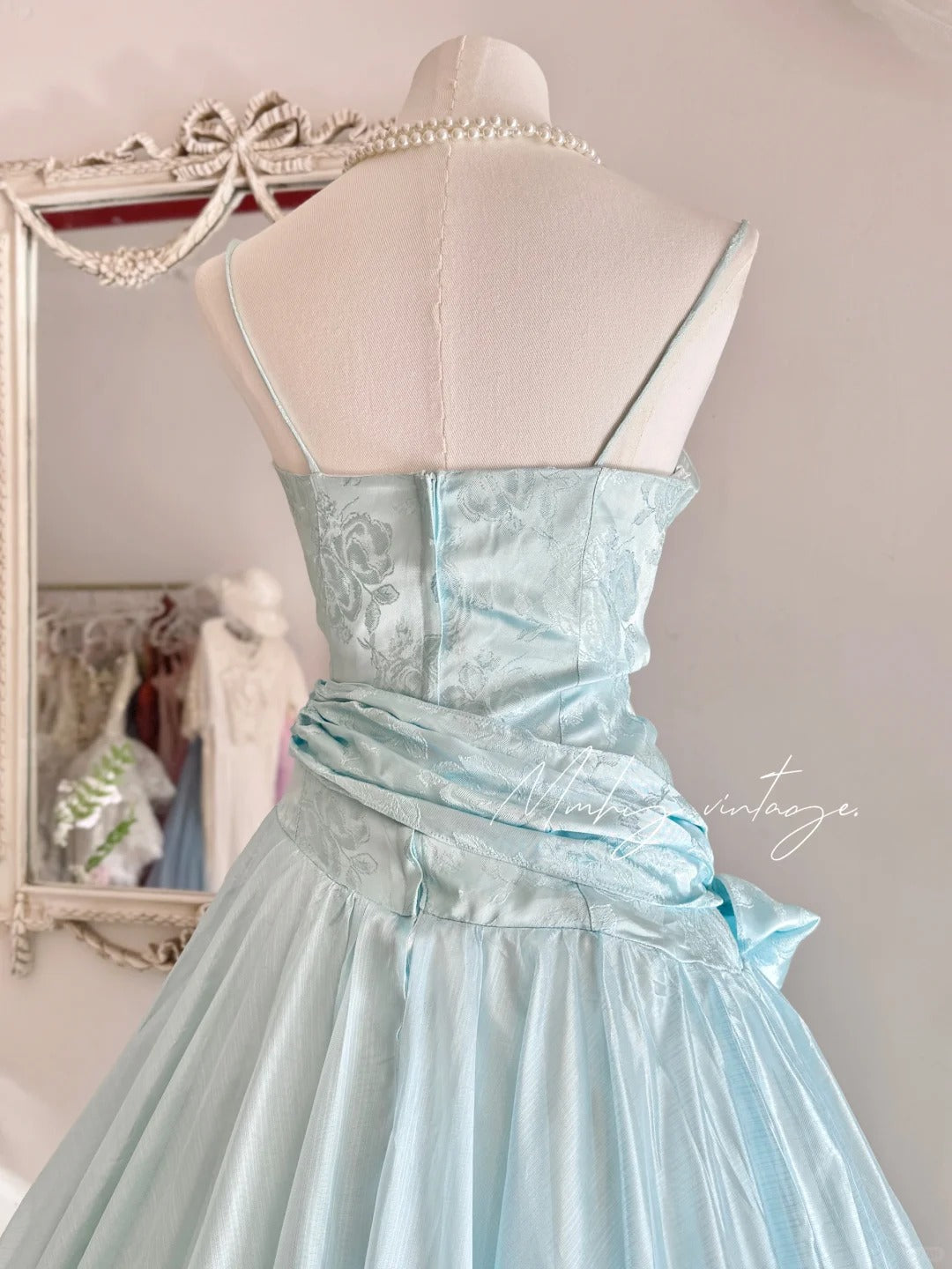 Blue Retro Cute Fashion Elegant Spaghetti Strap Long Tulle Ball Gown Evening Dress Prom Dress nv4088