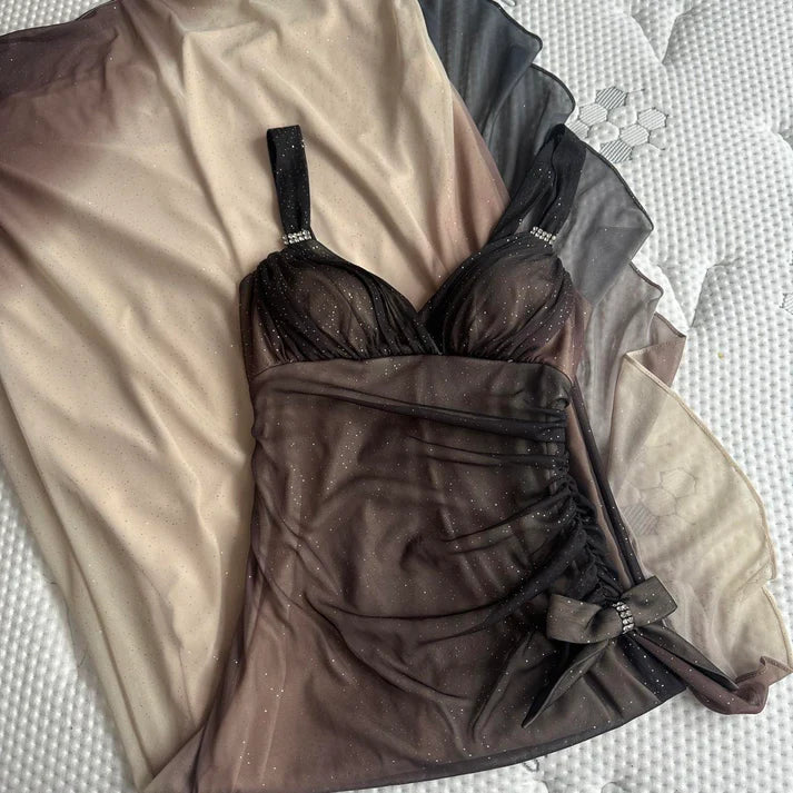 Brown and cream fashionable gradient beautiful unique glitter maxi dress vintage elegant long chiffon tulle ball gown evening dress party dress prom dress nv4249