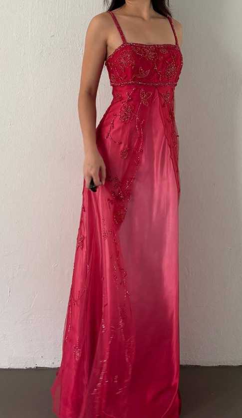 Cherry Red Gradient Retro Fashion Exquisite Beading Long Satin Ball Gown Evening Dress Party Dress Prom Dress nv4585