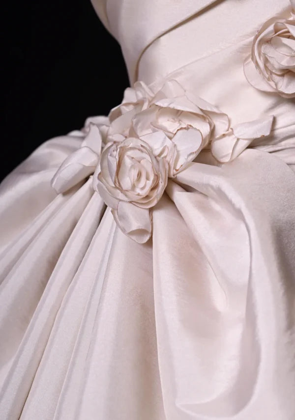 Cute A Line V Neck 3D Floral White Satin Short Homecoming Dress Birthday Dress nv5395