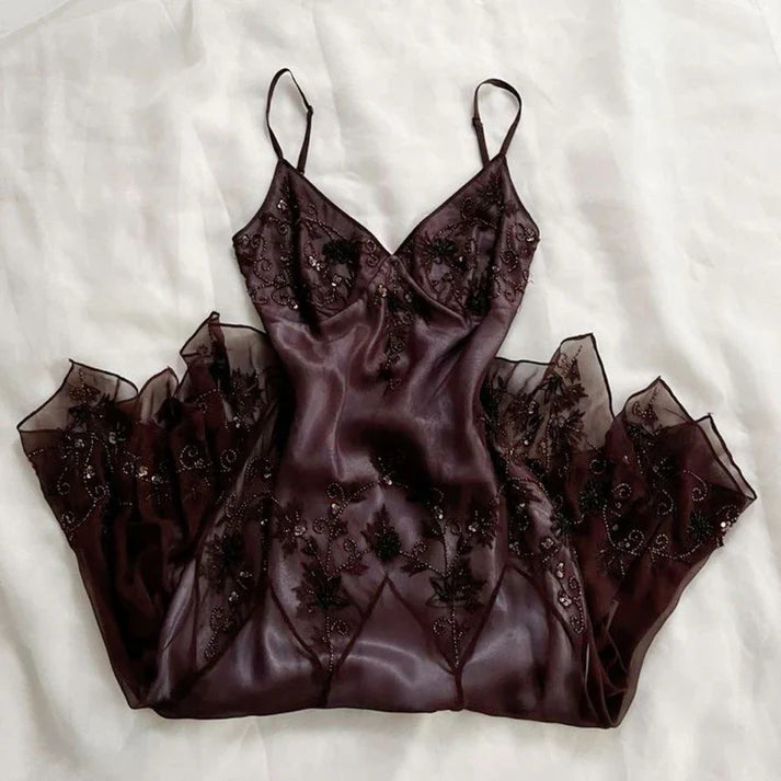 Dark Purple/Dark Pink Vintage Fashion Exquisite Beading Spaghetti Strap Long Tulle Ball Gown Evening Gown Party Dress nv3587