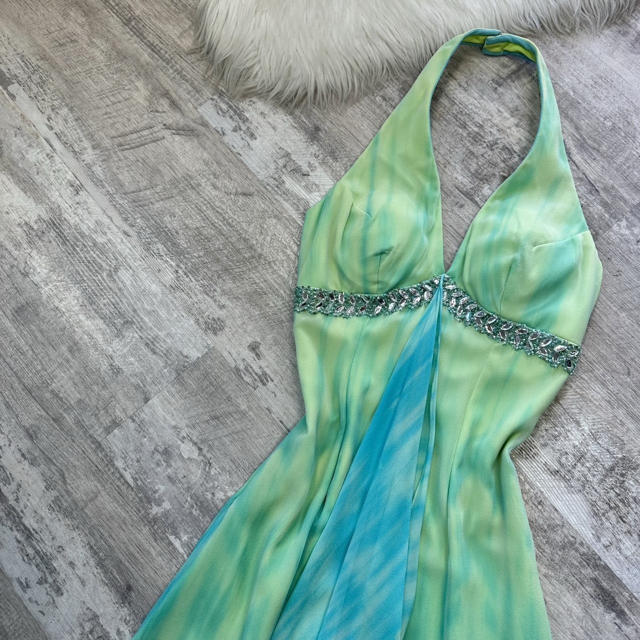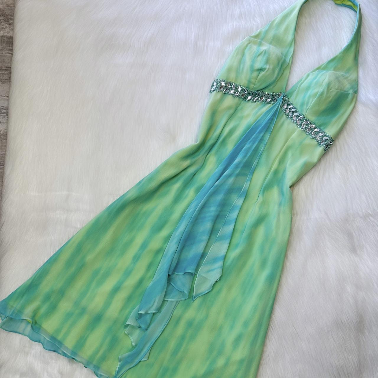 Green and blue beautiful mini backless rhinestones flowing short chiffon homecoming dress prom dress evening dress birthday party dress banquet dress nv4563