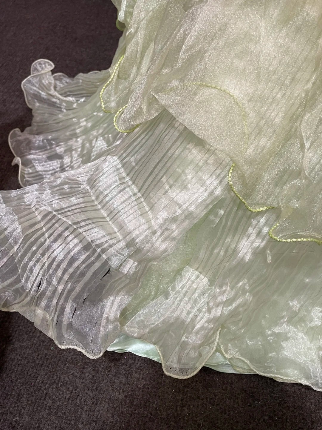 Green Elegant Vintage Fashion Exquisite Floral Beaded Long tulle Floor Length Ball Gown Evening Gown Prom Dress nv4081