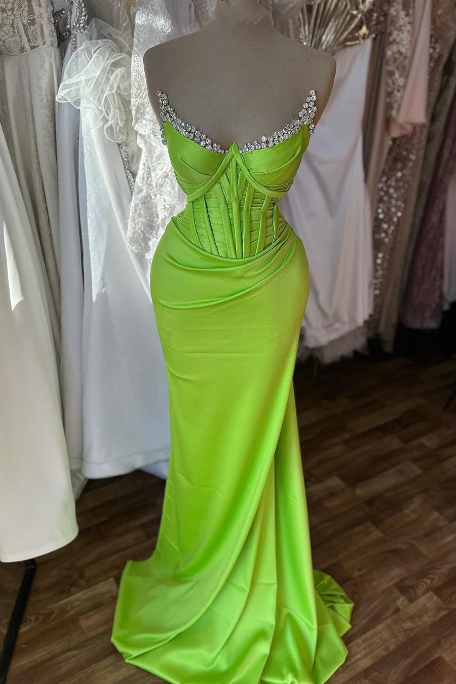 Green Shiny Fashion Elegant Spaghetti Strap Sleeveless Long Satin Floor Length Ball Gown Evening Dress Party Dress nv3720