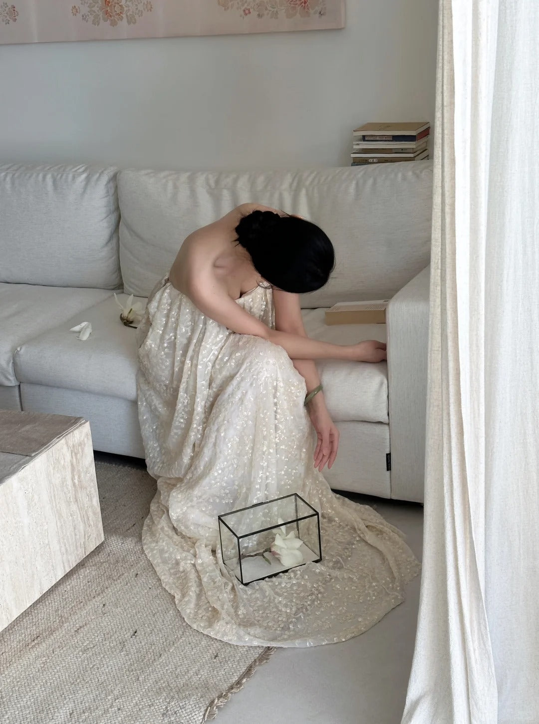 Ivory White Gorgeous Exquisite Beading Long Floor Length Tulle Sequined Ball Gown Evening Dress Birthday Holiday Party Dress nv4070