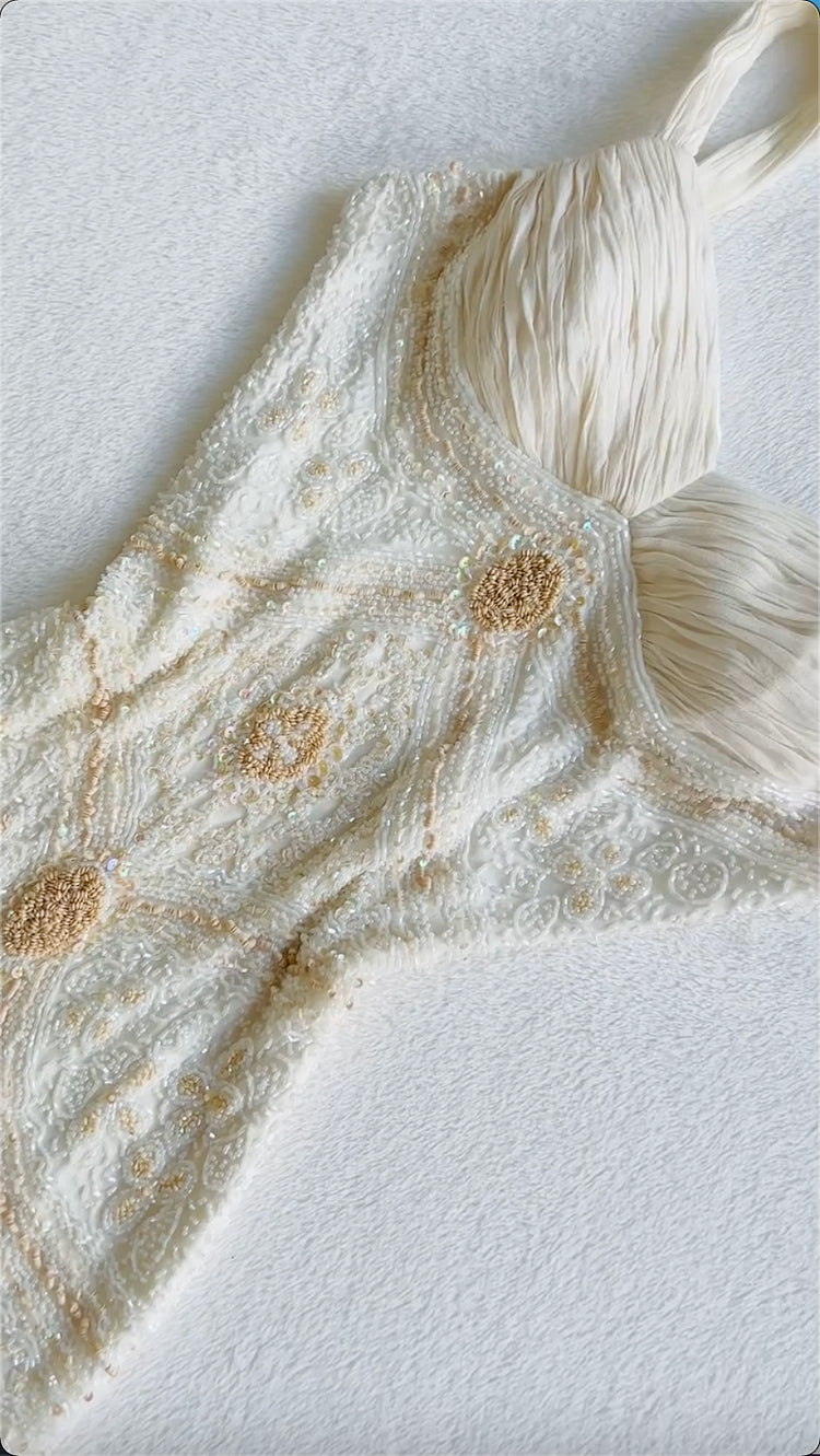 Ivory White Vintage Elegant Fashion Exquisite Beading Long Lace Ball Gown Evening Dress Party Dress nv3566