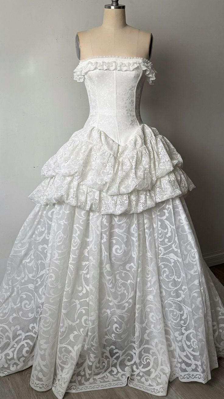 NiceVestidos--Lace Off - The - Shoulder Multi - Layered Ruffled Maxi Prom Dress NV5763