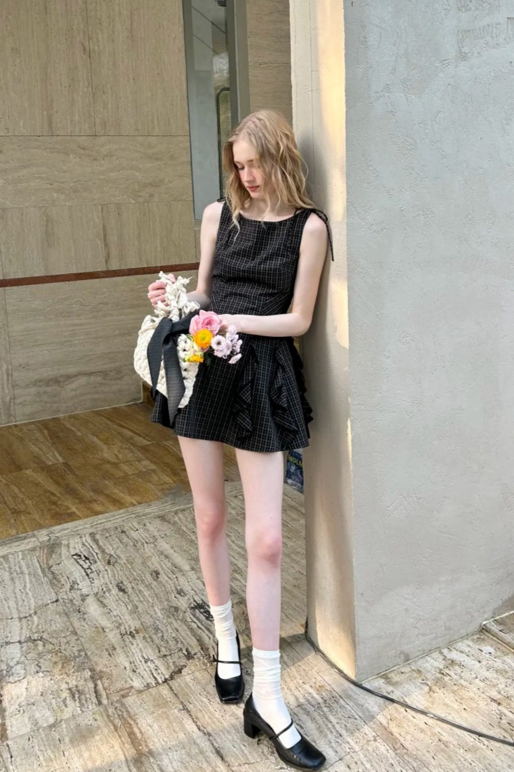 NiceVestidos--Short Homecoming Dress Birthday Dress Gown Plaid Vintage Lace NV5672