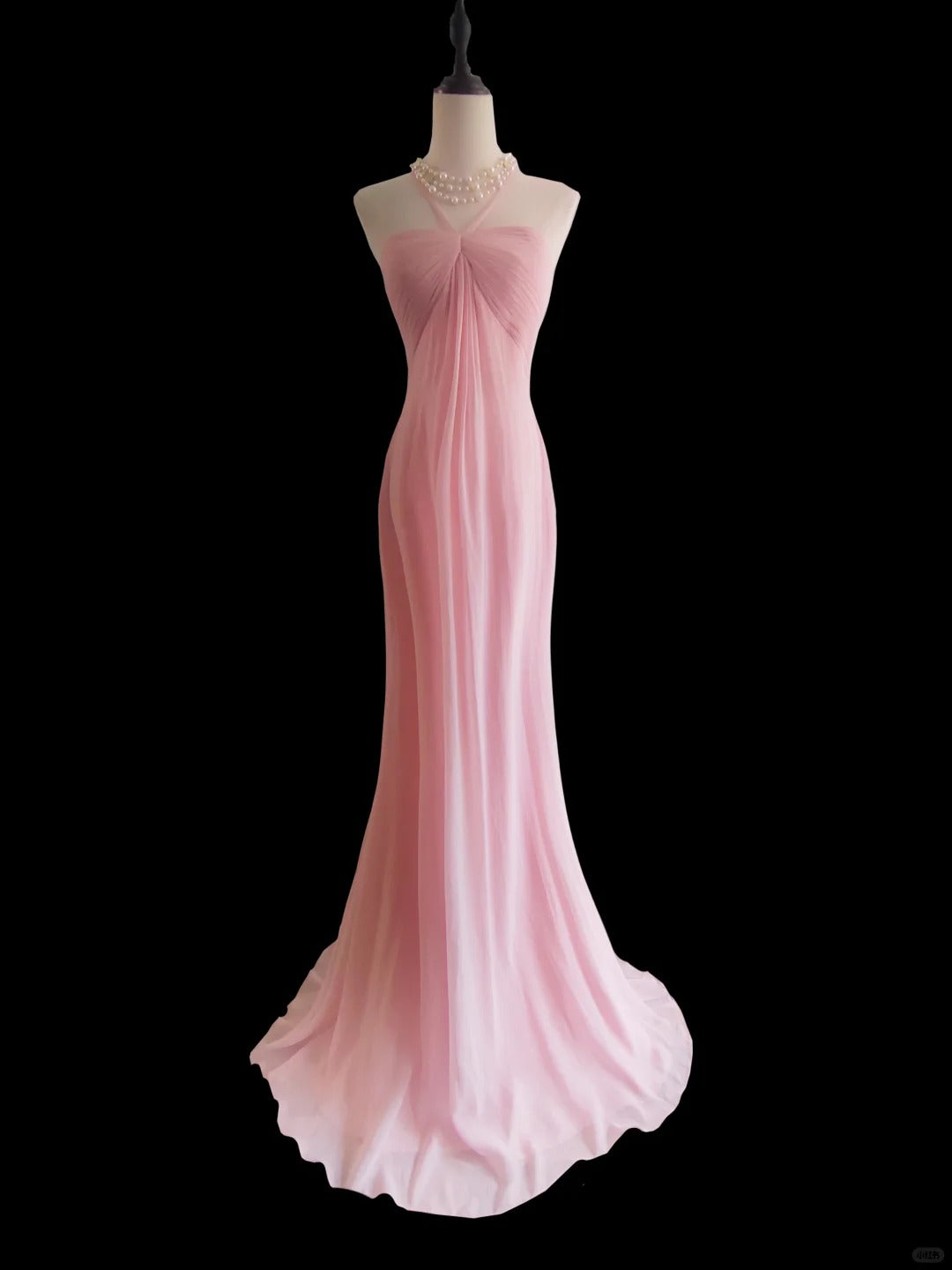 Pink Fashion Elegant Suspender Long Mermaid Slim Fishtail Skirt Chiffon Floor Length Train Ball Gown Evening Dress Wedding Bridesmaid Party Dress Prom Dress nv3865
