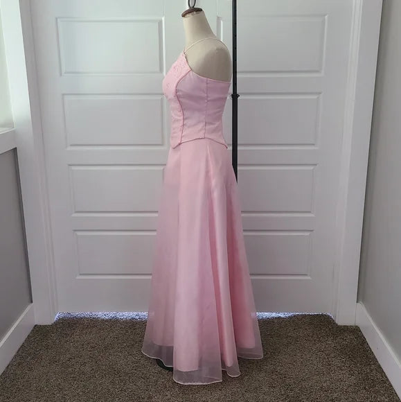 Pink Fashion Embroidered Strap Long Satin Prom Dress Evening Dress Party Dress nv3639