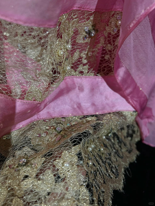 Pink Fashion Ruffled Mermaid Satin Beaded Long Ball Gown Evening Dress Beautiful Bride Wedding Dress nv4291