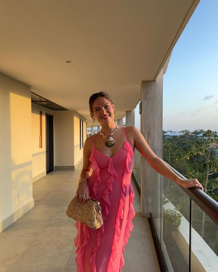 Pink Fashion Unique Spaghetti Strap Long Chiffon Ruffle Ball Gown Evening Dress Party Dress nv3326