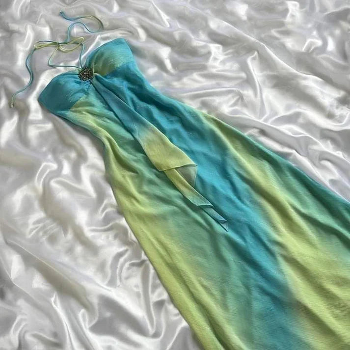 Pink Gorgeous Gradient Strapless Long Chiffon Elegant Ball Gown Evening Dress Party Dress nv4610