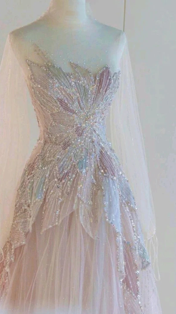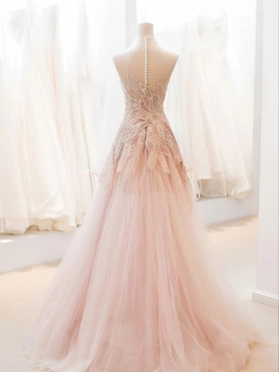 Pink Sweet Sparkling Off-the-shoulder Beaded Long Elegant Tulle Formal Prom Dress Evening Gown nv3475