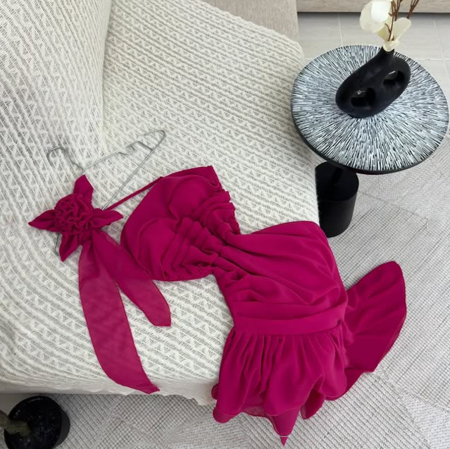 Pink Fashion Elegant Floral Long Chiffon Ruffle Ball Gown Evening Dress Party Dress nv3560