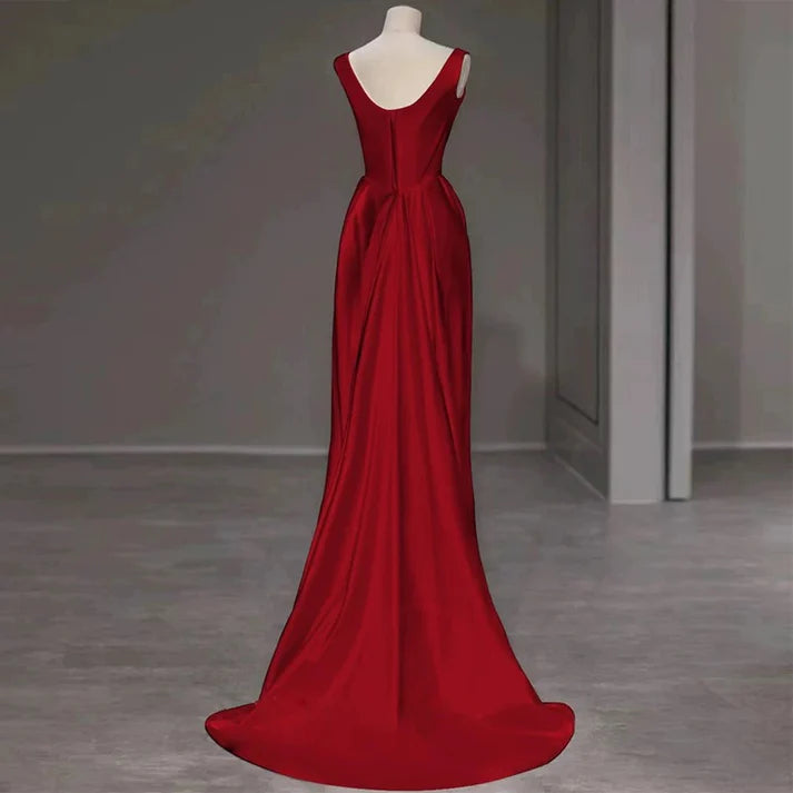 Red retro fashion square neckline sexy mermaid long satin floor length ball gown evening dress nv3618