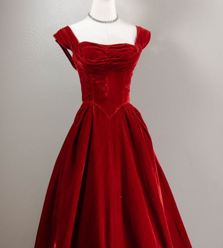 Red vintage fashion wide straps long velvet elegant ball gown evening dress party dress nv3394