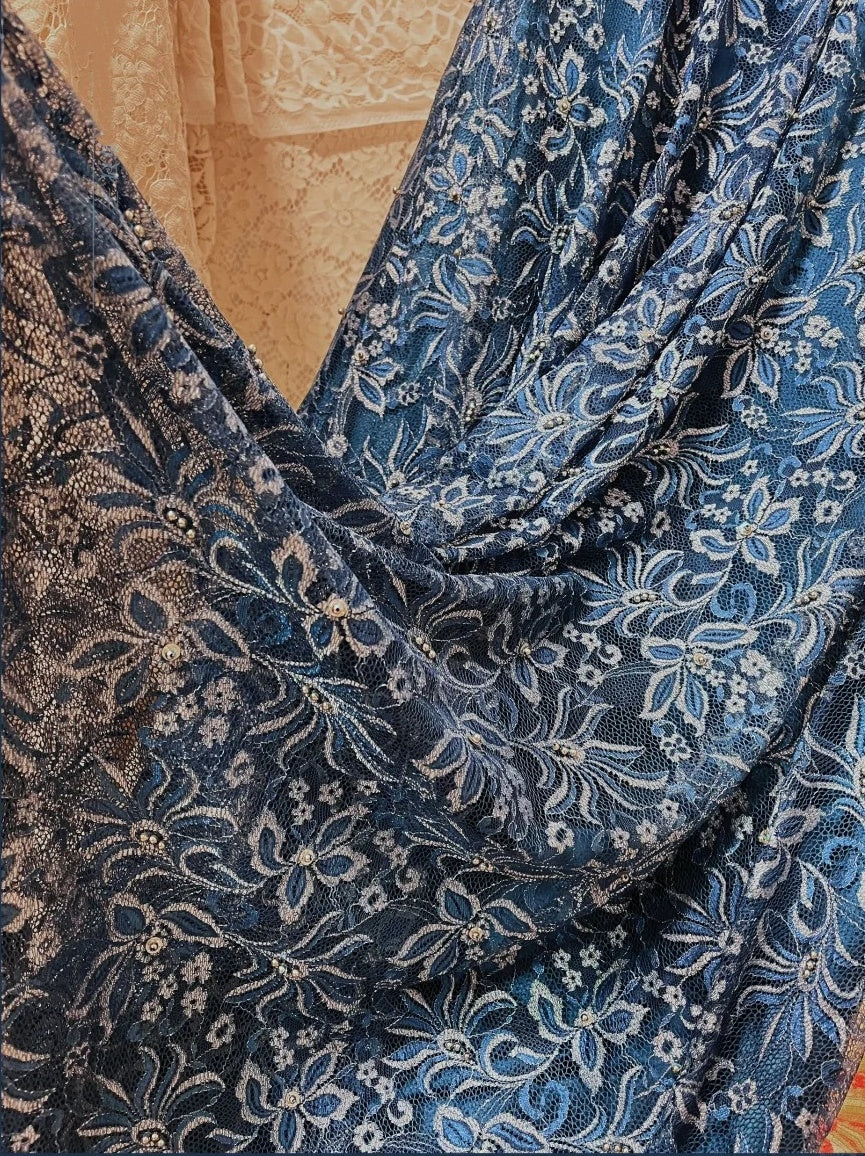 Sapphire blue exquisite beaded pleated elegant and charming retro fashion floral long taffeta lace ball gown evening dress nv4316