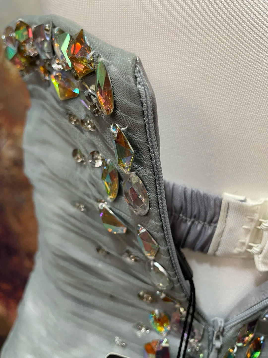 Silver Grey Vintage Elegant Exquisite Gem Beaded Long Tulle Ball Gown Evening Dress Prom Dress nv4079