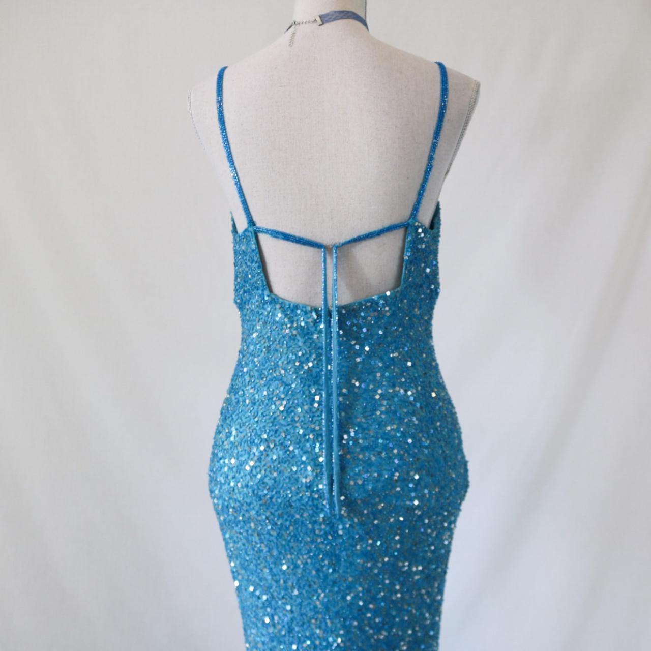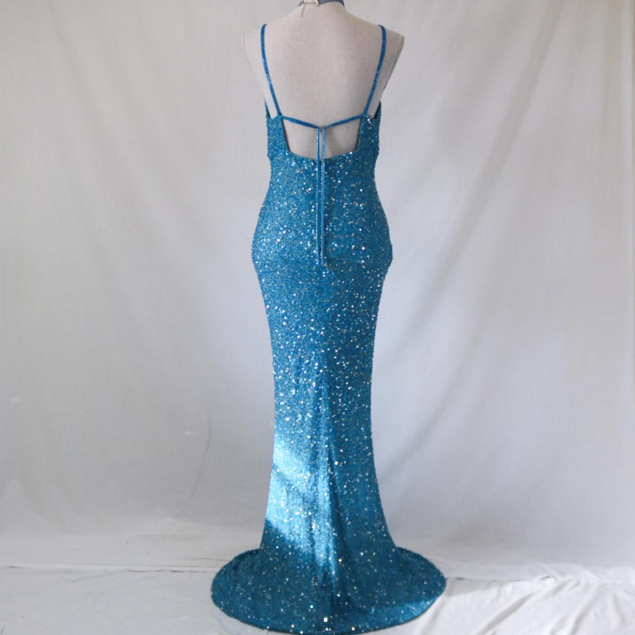 Vintage aqua blue beaded sequined long formal prom dress, evening gown, party dress nv4986