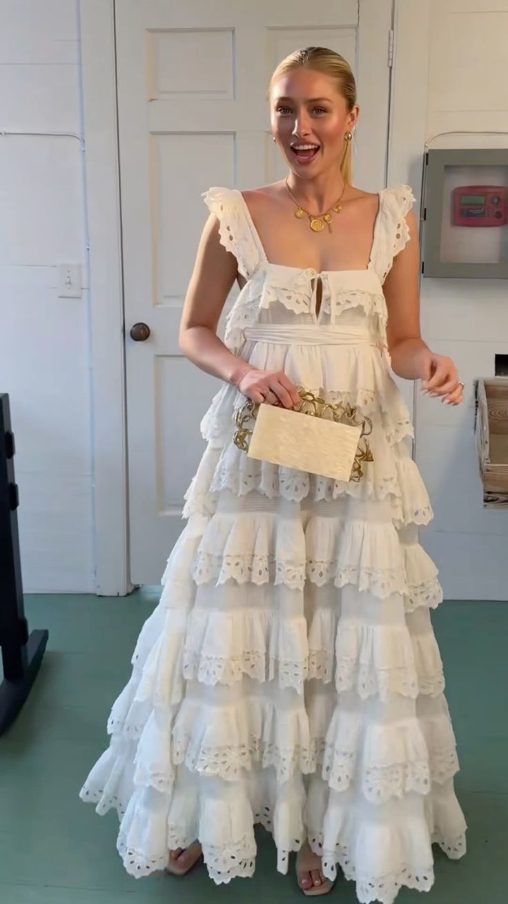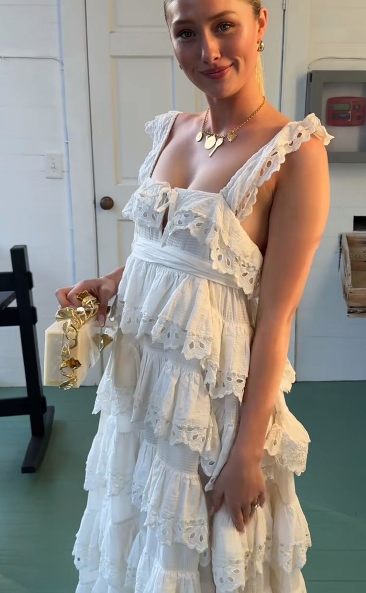 White exquisite elegant lace long ruffled tulle ball gown evening dress party dress nv3362