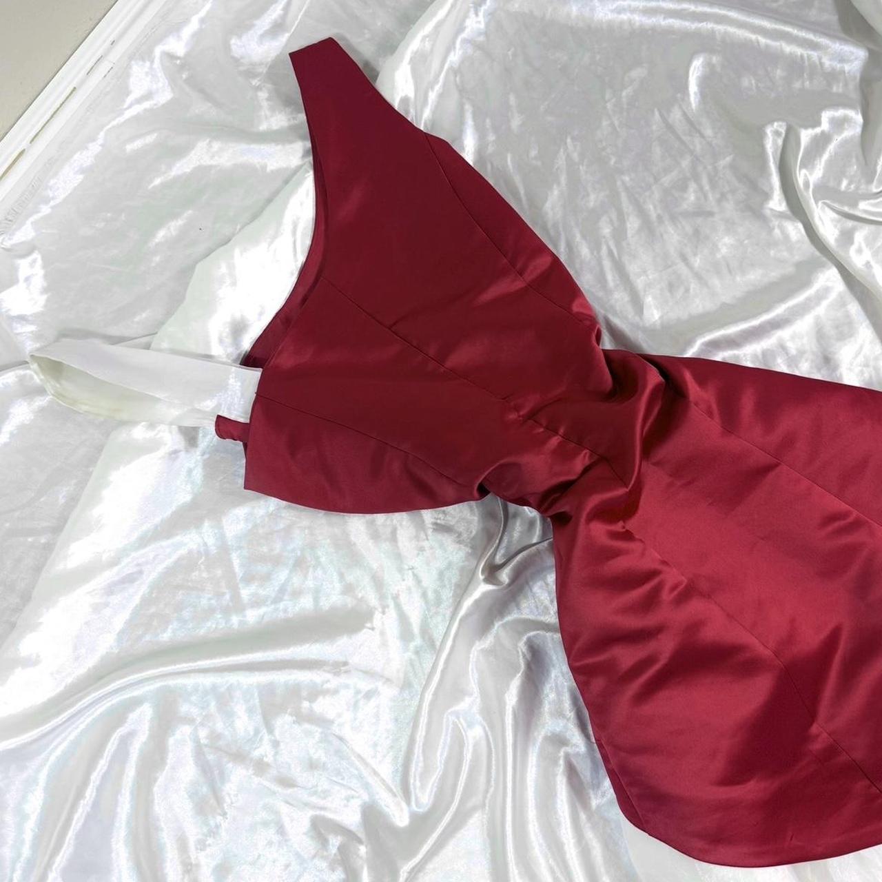 White/Red Delicate Floral Satin Tulle Ball Gown 90s Long Prom nv5372