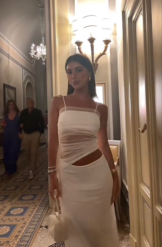 White tulle simple spaghetti strap long ball gown evening dress party dress nv2713