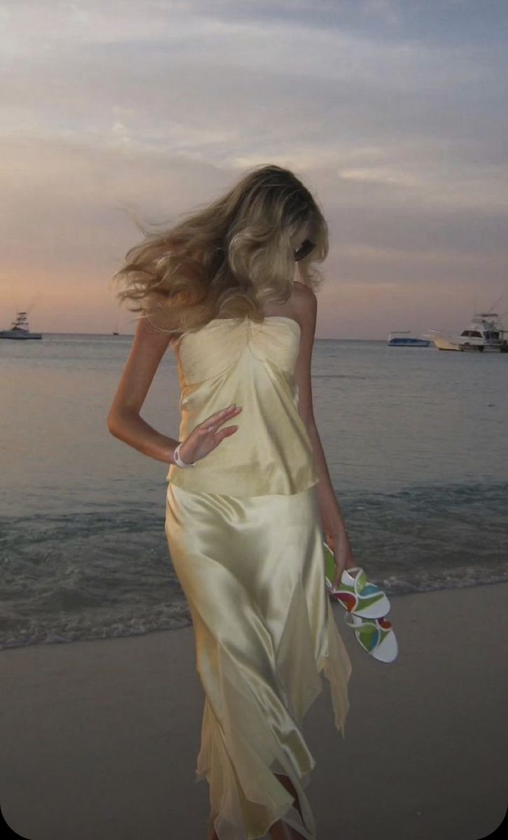 Yellow stylish elegant two-piece long satin ball gown evening dress seaside holiday party dress nv3596