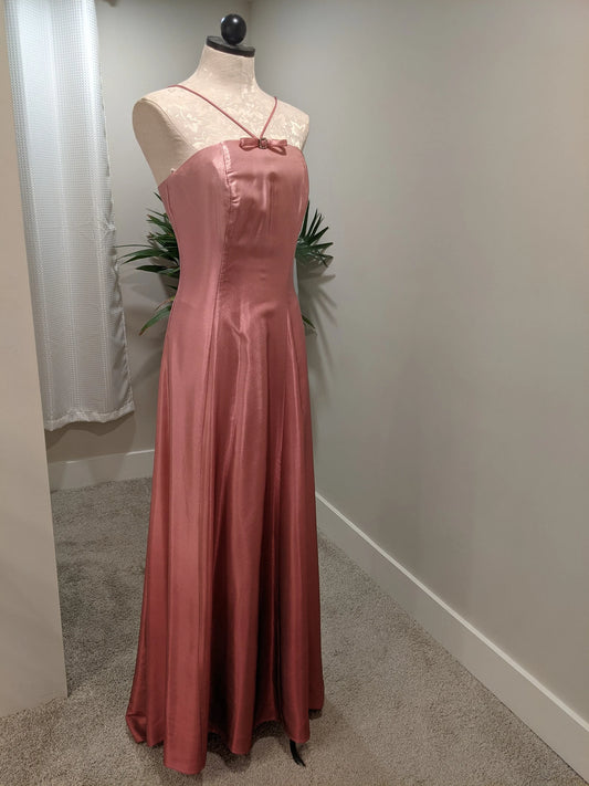 Pink Simple Fashion Elegant Bow Decoration Suspender Long Satin Floor Length Ball Gown Evening Dress Prom Dress Wedding Guest Party Dress Bridesmaid Dress nv3942